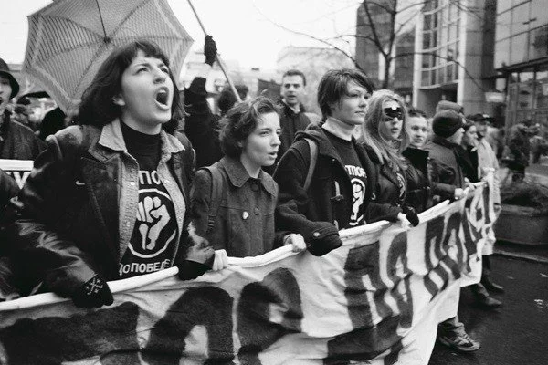Photo of a protest put on by Otpor! Otpor- which means Resistance in english) was a student movement that toppled the Serbian dictator Milosevic in the 1990s.